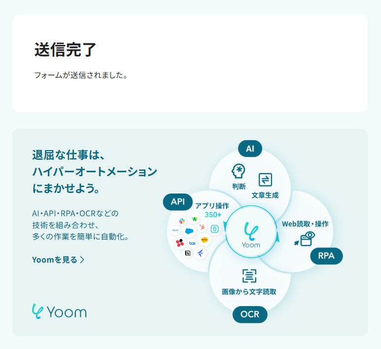 今回ご紹介したような業務の自動化は、ノーコードツールの「Yoom」を活用することで、プログラミングの知識がなくても直感的な操作で簡単に実現しやすいです。
