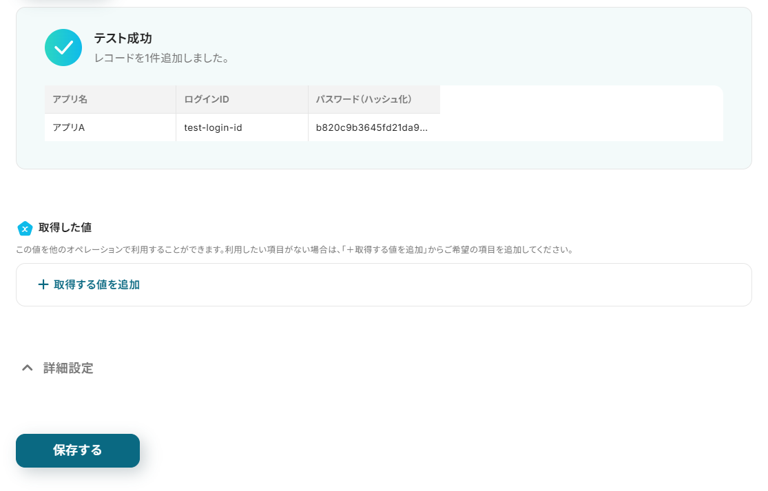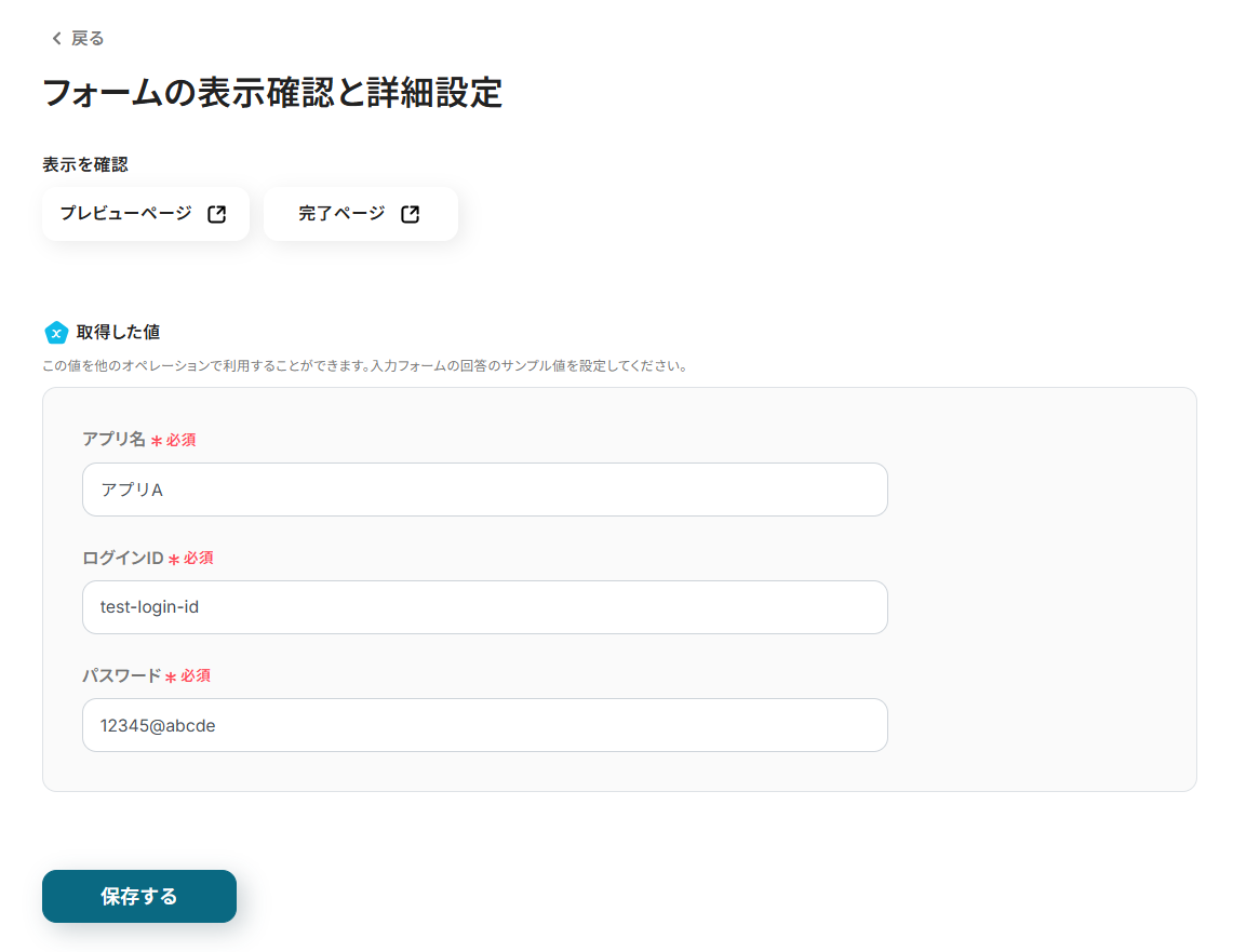 続く画面で、取得した値に任意の情報を入力して保存しましょう。