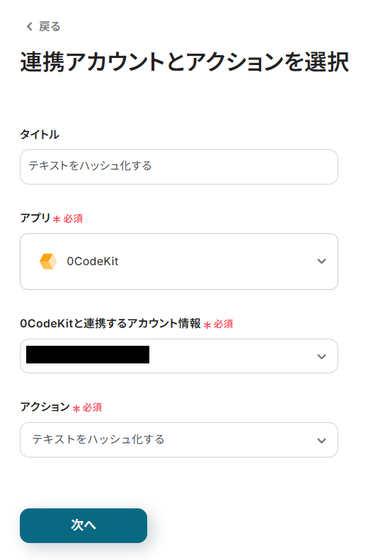 0CodeKit APIのテキストハッシュ化アクションは、フローの中に組み込むことで、フォームから受け取った個人情報などの機密データを安全な形式に変換できます。