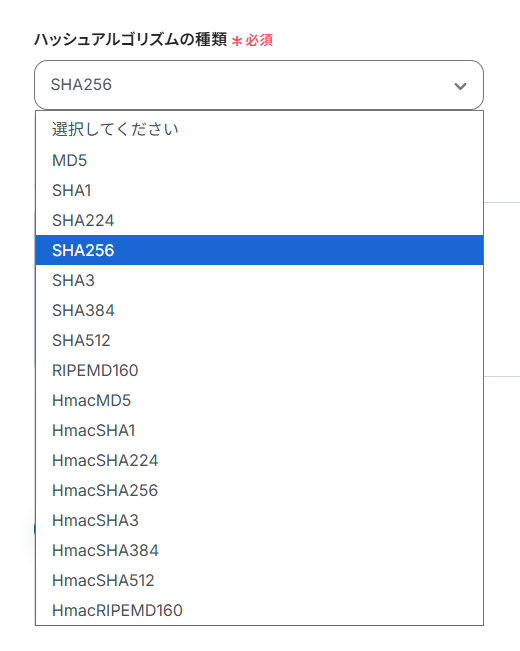 今回は、パスワードをハッシュ化するため、取得した値から以下のように設定しました。