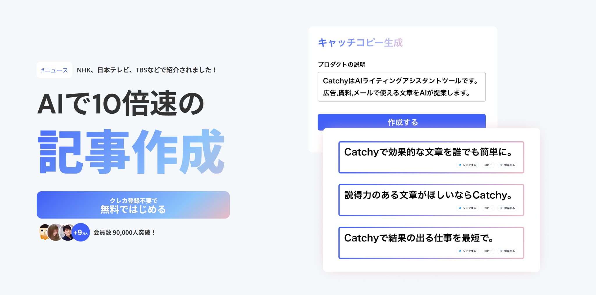 ・キャッチコピー、記事タイトル、広告文など100種類以上の生成ツール