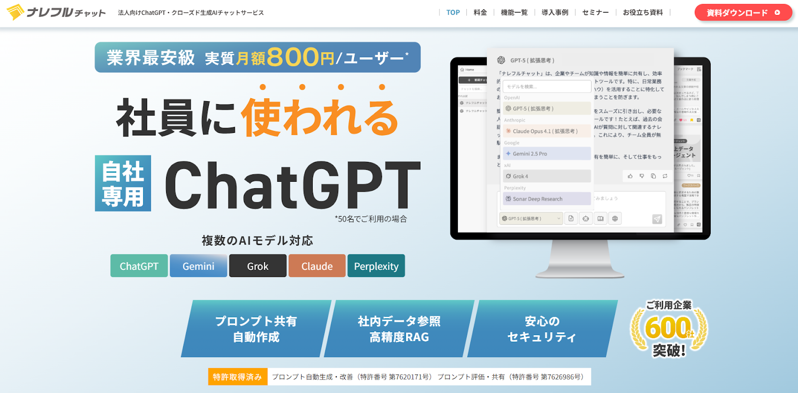 ・特許取得済みのプロンプト自動生成機能で、専門知識がなくても高品質な回答