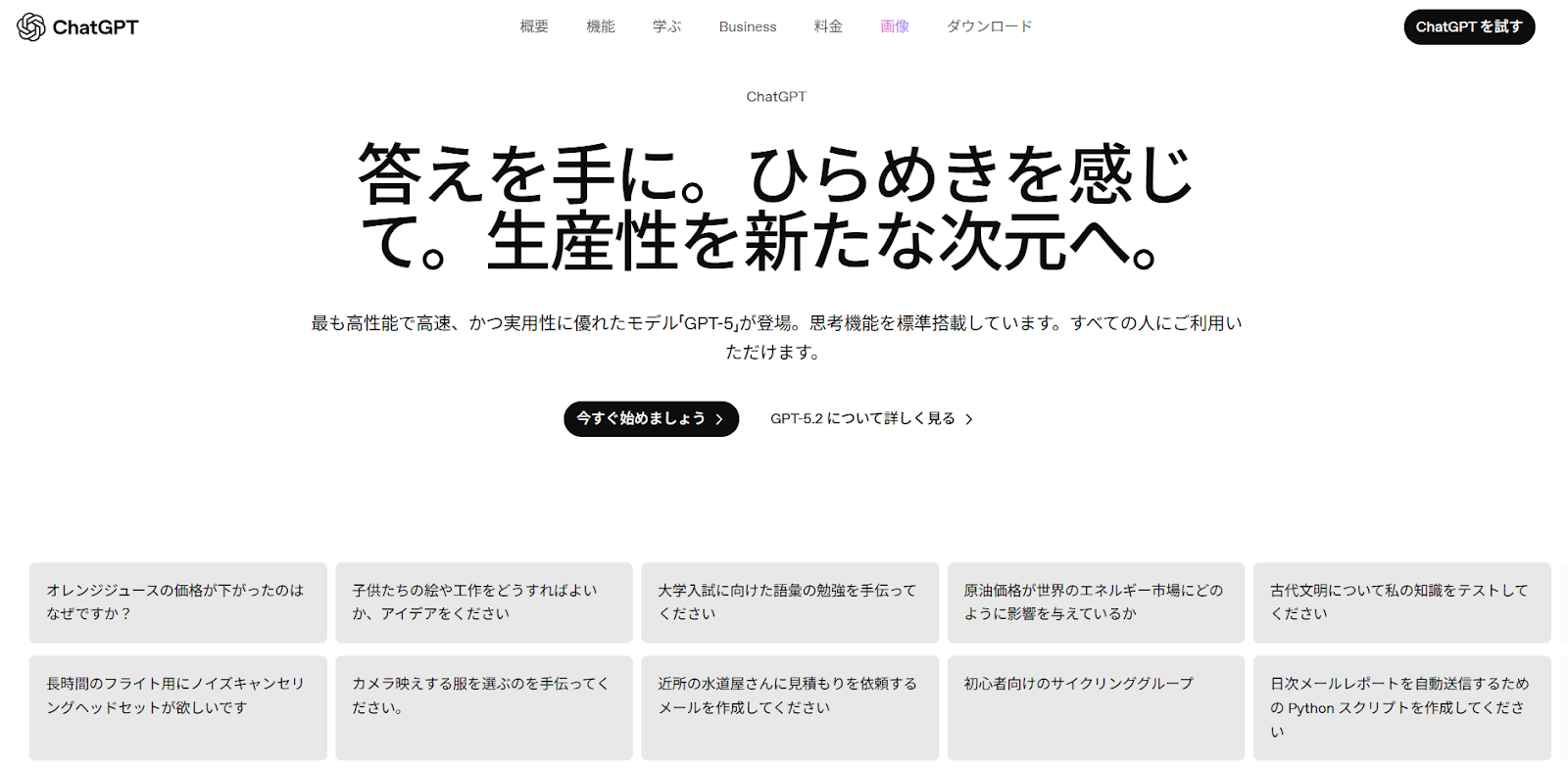 生成AIの代名詞的存在。圧倒的な知名度と汎用性を誇る万能ツール
