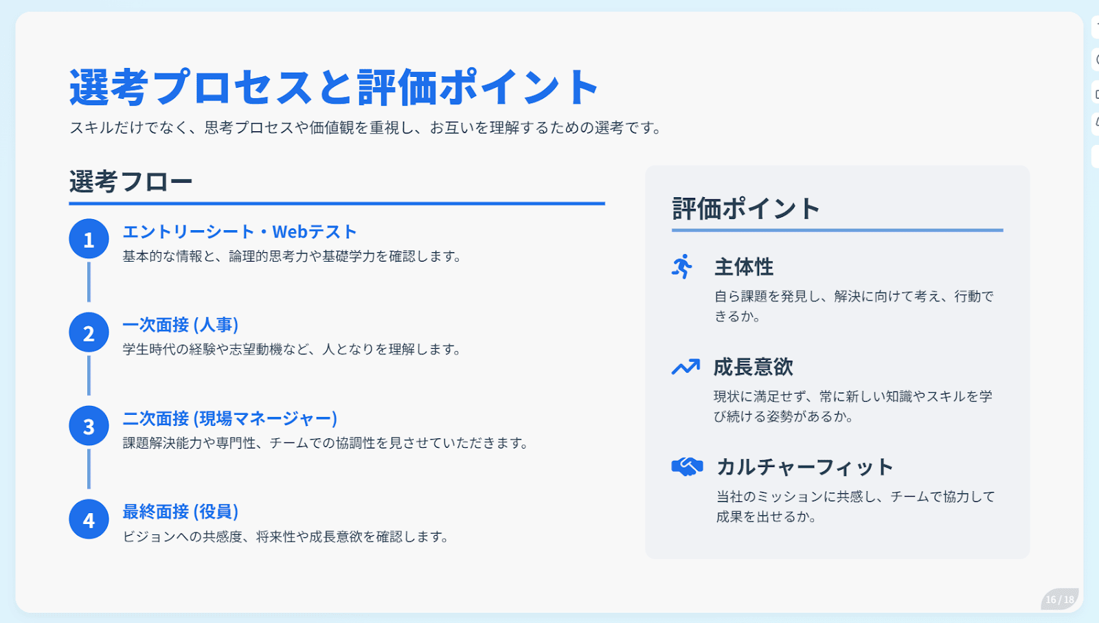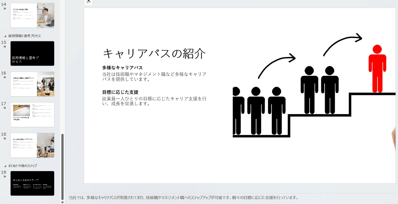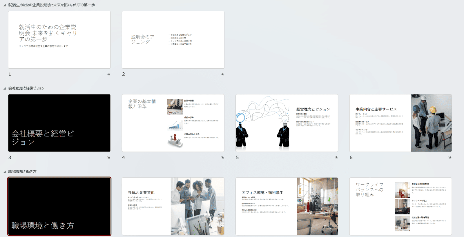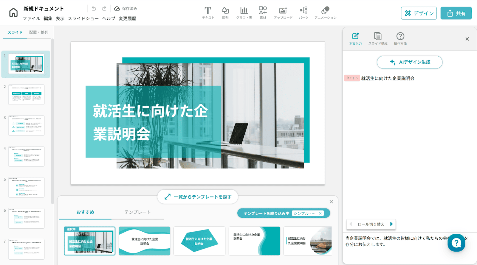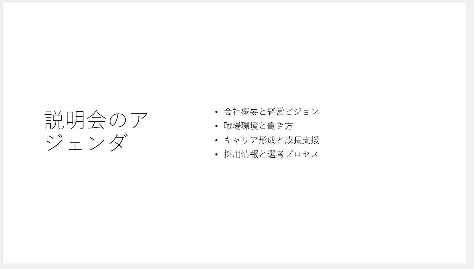 なお、今回は「就活生に向けた企業説明会」をテーマにスライドを作成していきます。