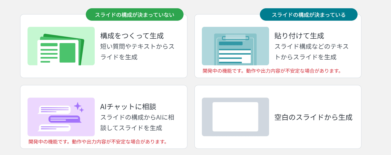 それでは各スライド生成ツールについて見ていきましょう。