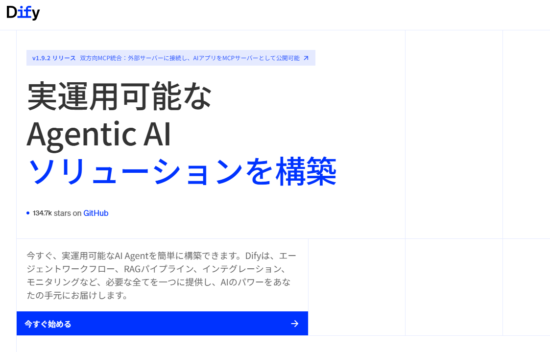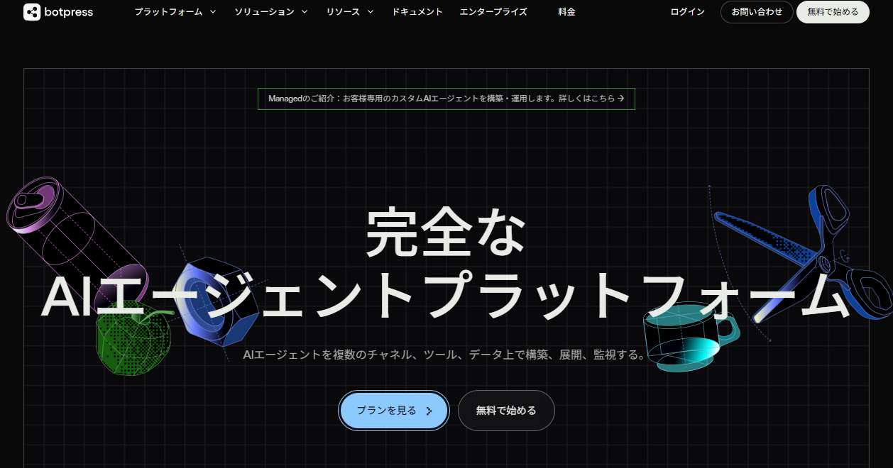 テンプレートやプラグインを活用できる「汎用型」エージェントを作成できるツールです。SNSの運用やカスタマーサポートのボット作成など、幅広い業務を手軽に自動化したい場合に適しています。外部ツールとの接続も容易で、非エンジニアでもAIチャットボットやエージェントを立ち上げやすいことが魅力です。
