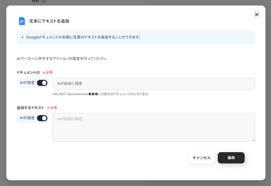 - AIワーカーの基本設定は「【AIワーカー】基本的な設定方法」をご参照ください。
