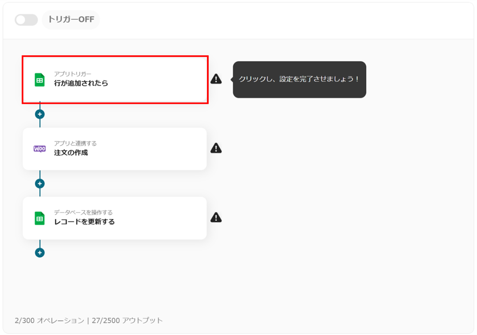 それでは、実際にテンプレートを使用して「Google スプレッドシートで行が追加されたらWooCommerceに注文情報を追加する」フローを一緒に作っていきましょう!