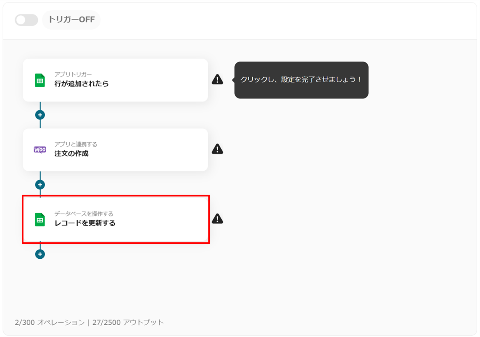 (1)次に、Google スプレッドシートのレコードを更新します。