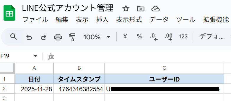 用意したシートに日付やユーザー情報が自動で追記されました!