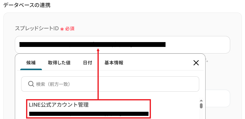 次に、先ほど用意したシートのスプレッドシートIDを候補から選択しましょう。