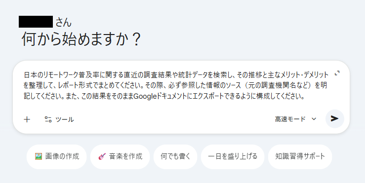 検証③【Gemini】情報ソース付きの市場調査からドキュメント作成 GeminiのWeb検索連動機能 とGoogle Workspace連携 の利便性を検証するため、特定の業界動向に関する市場調査を行い、その結果をGoogleドキュメントにまとめる作業を行いました。