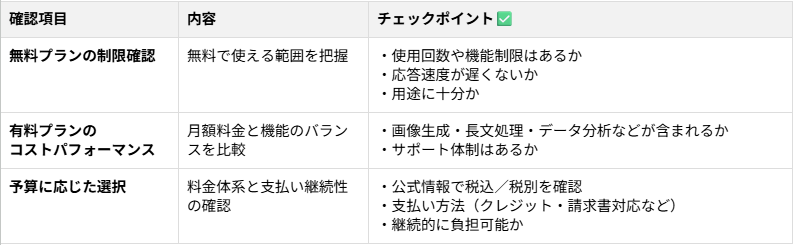 なお、利用頻度が低い場合は無料版で十分ですが、業務で本格的に活用するなら有料プランの導入が適しています。