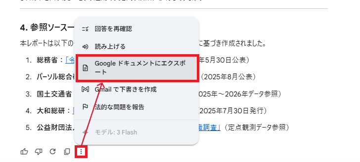 検証結果 :Geminiは的確に情報を収集し、指定通りソースを明記した上でレポートを作成 しました。