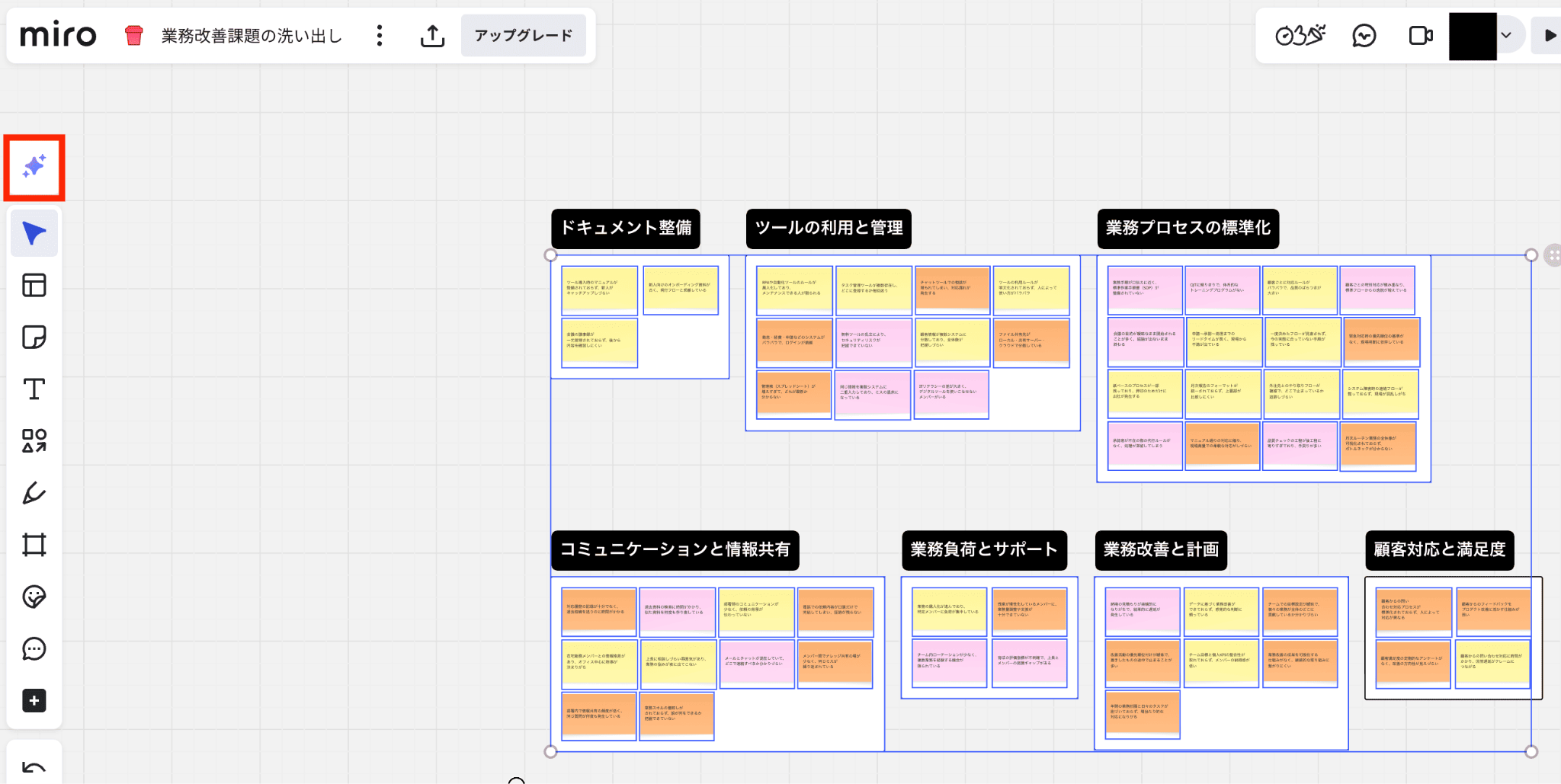 まず、ボードに「業務改善の課題洗い出し」というフレームを作成します。