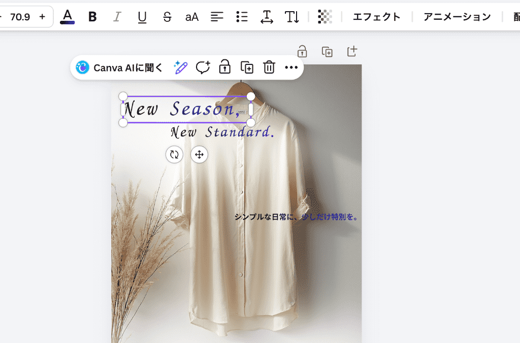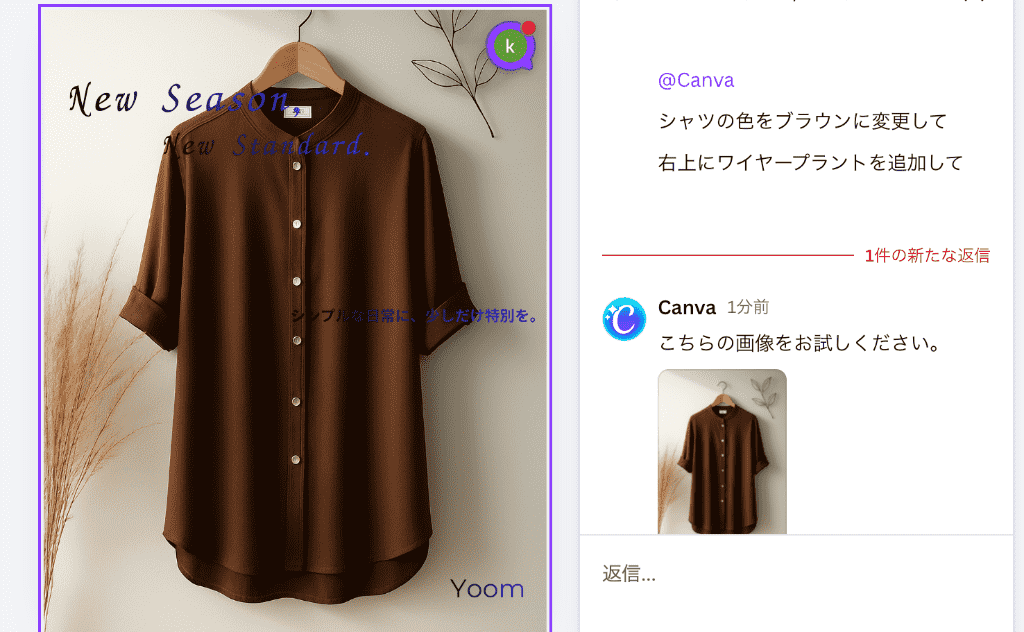 なお、編集画面上でもCanva AIを呼びだせるので、被写体の軽微な変更(色味や周りの装飾物の有無など)も、らくらくこなせちゃうんです!