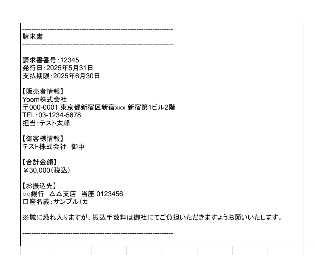ファイルを開いて、ステップ6で生成したテキストデータを基に請求書が作成されていることも確認してみましょう。