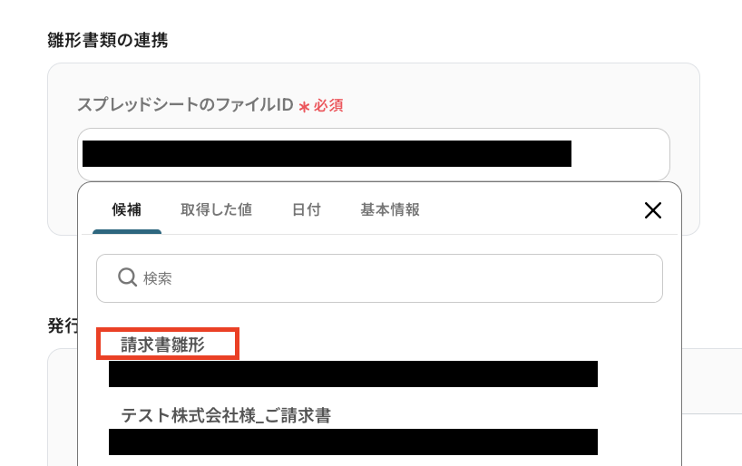 先ほど請求書の雛形を作成したスプレッドシートを設定します。