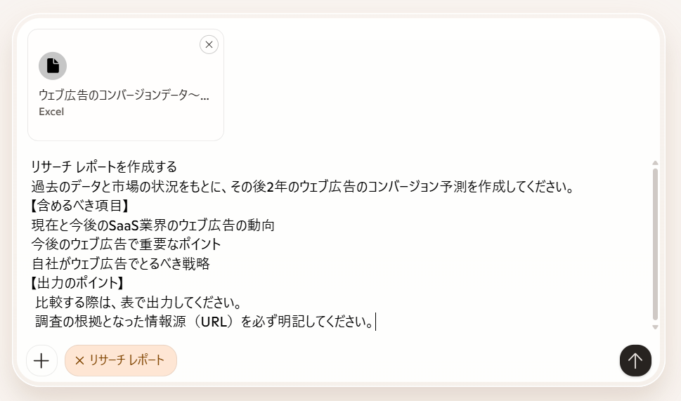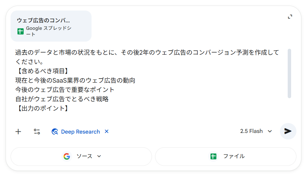 もしDeep Researchで未来予測を行うときに、AIに参照してほしいリンクが決まっているときは、プロンプトに組み込むことをおすすめします。