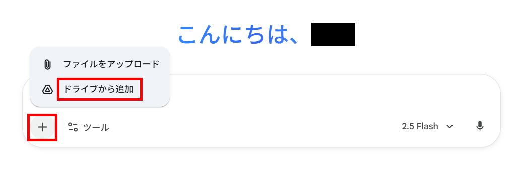 Geminiにログイン後、Deep Researchを行うモデルを入力欄のプルダウンから選択します。
