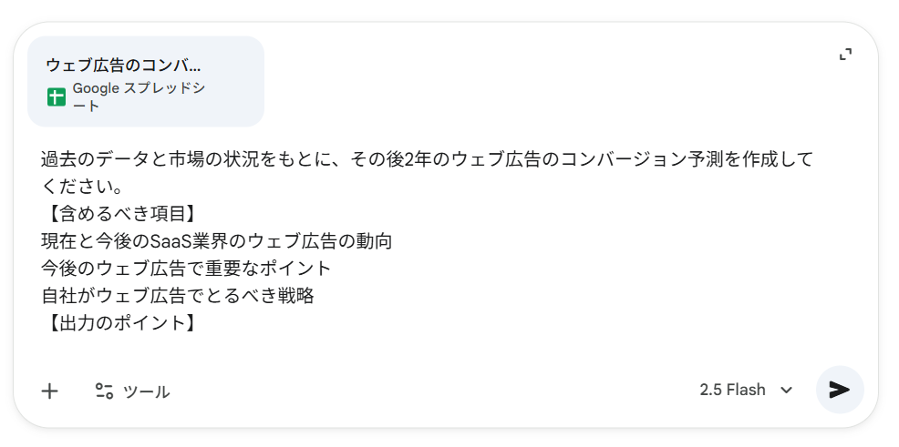 AIになじみがない方にはハードルが高くなりますが、日頃からAIを頻繁に利用しており、プロンプトの調整ができる方は、Geminiを使った未来予測がおすすめです。