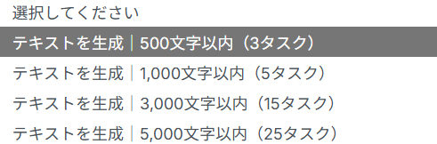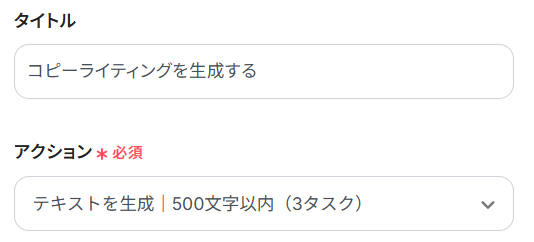 アクションは、デフォルトで「テキストを生成|500文字以内(3タスク)」が選択されています。