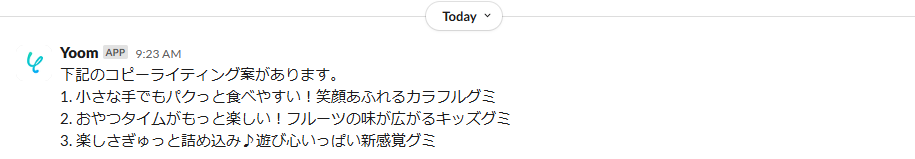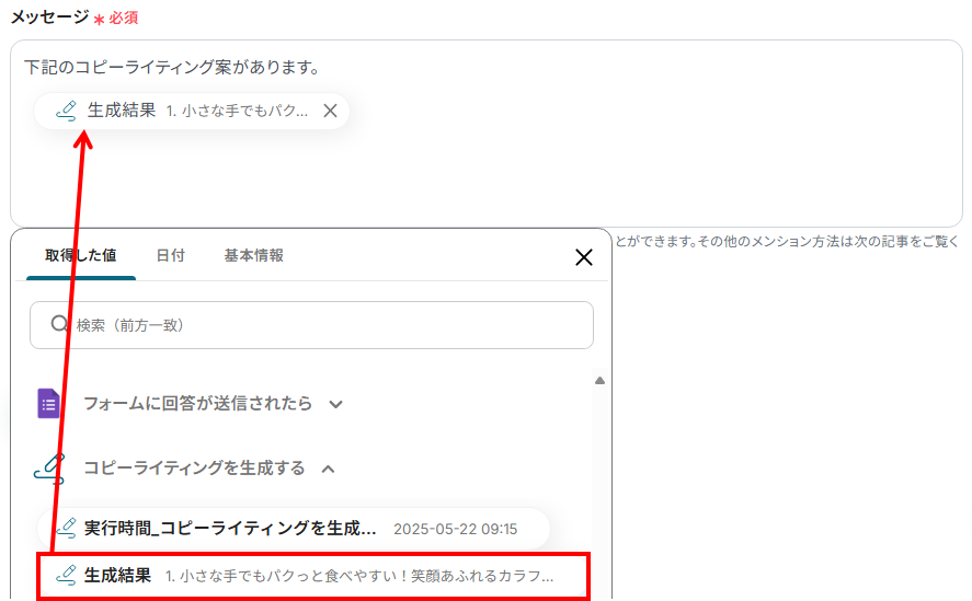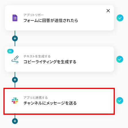 1.次は、先ほど生成したコピーライティングを、Slackのメッセージに送信するための設定をします。