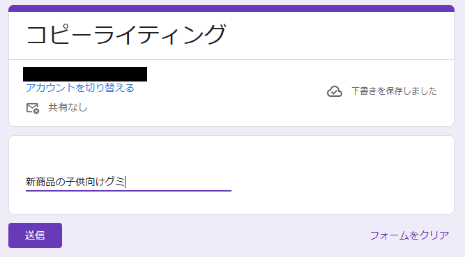また、この後のテスト操作でGoogleフォームから回答が送信されている必要があるので、フォームの回答もあわせて行いましょう。