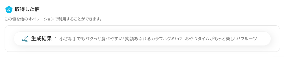 下記のように指示した内容に沿った生成結果が表示されていればOKです!
