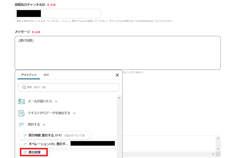 ※解説)このように設定すると、要約結果を自動で引用し、Slackに送信することができます。