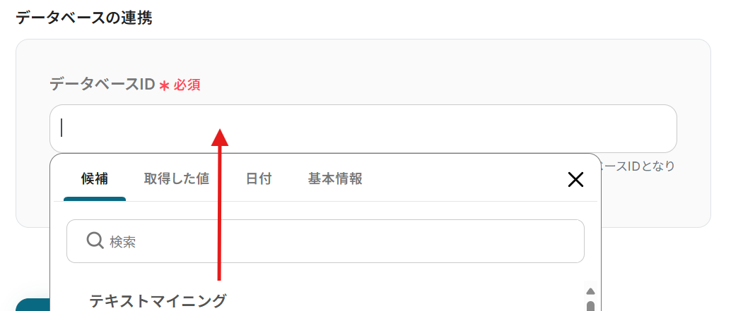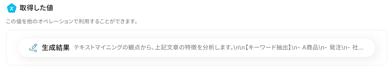 ※取得した値は変動するため、固定値で入力せずにアウトプットから選択してください。