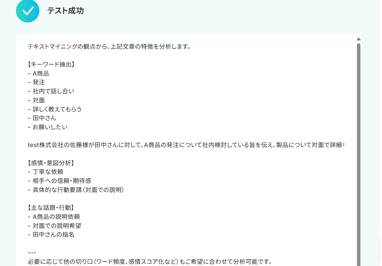 これにより、大量のテキストデータから迅速かつ正確にインサイトを抽出し、それをチームと共有したり、さらなる分析に活用したりすることで、よりデータに基づいた意思決定や業務改善を推進できるようになります!