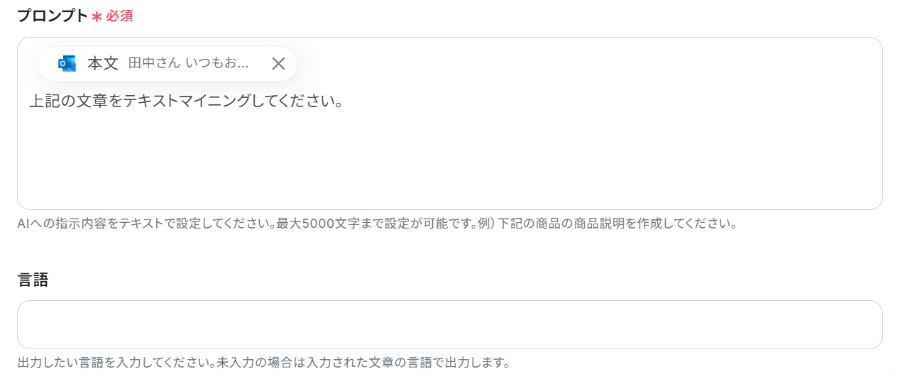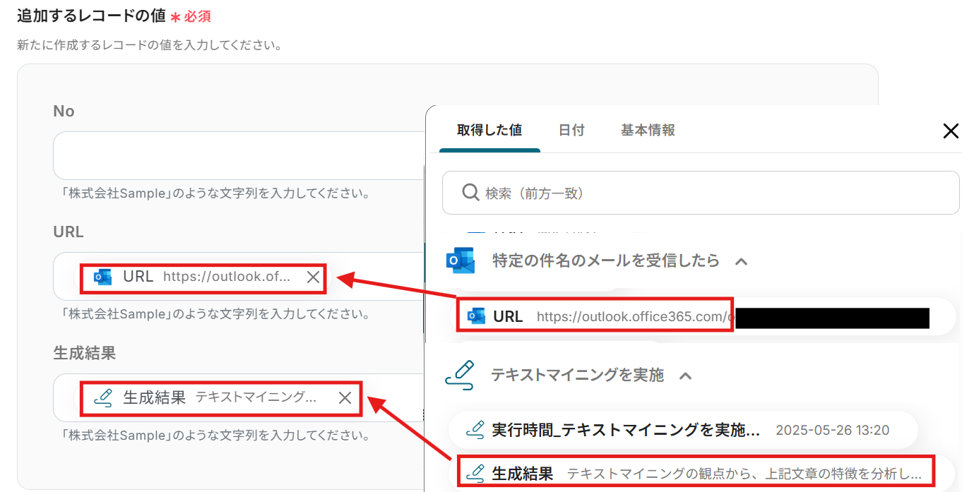 Outlookでメールを受信したら、AIでテキストマイニングを行い、Notionに追加する