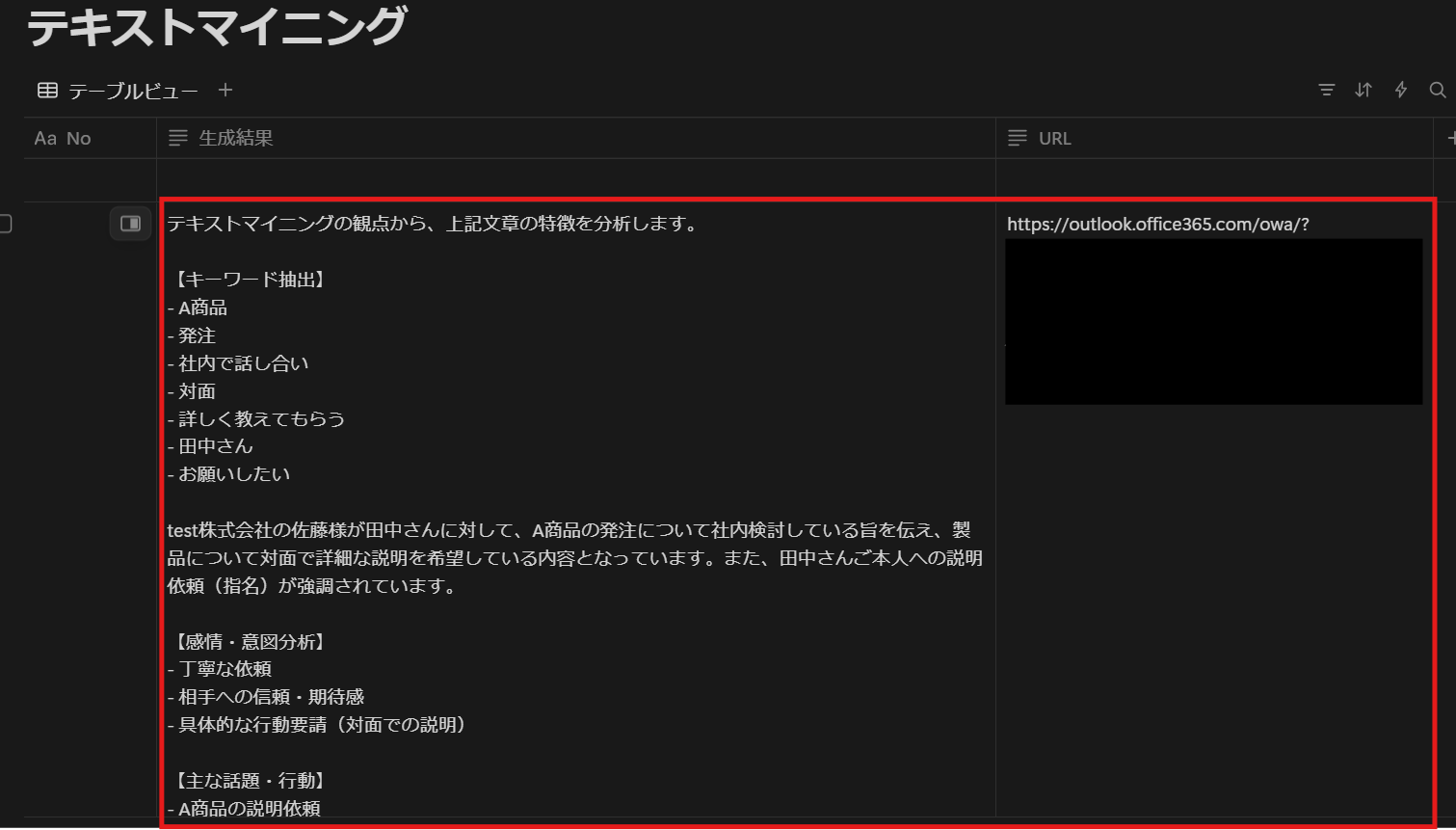 これですべての設定が完了したので、Outlookでメールを受信したら、AIでテキストマイニングを行い、Notionに追加されるかを確認してみましょう。