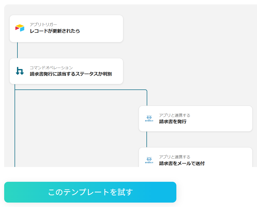 kintoneのレコードが特定の値に更新されたら、請求管理ロボに請求先を自動登録するテンプレートです。