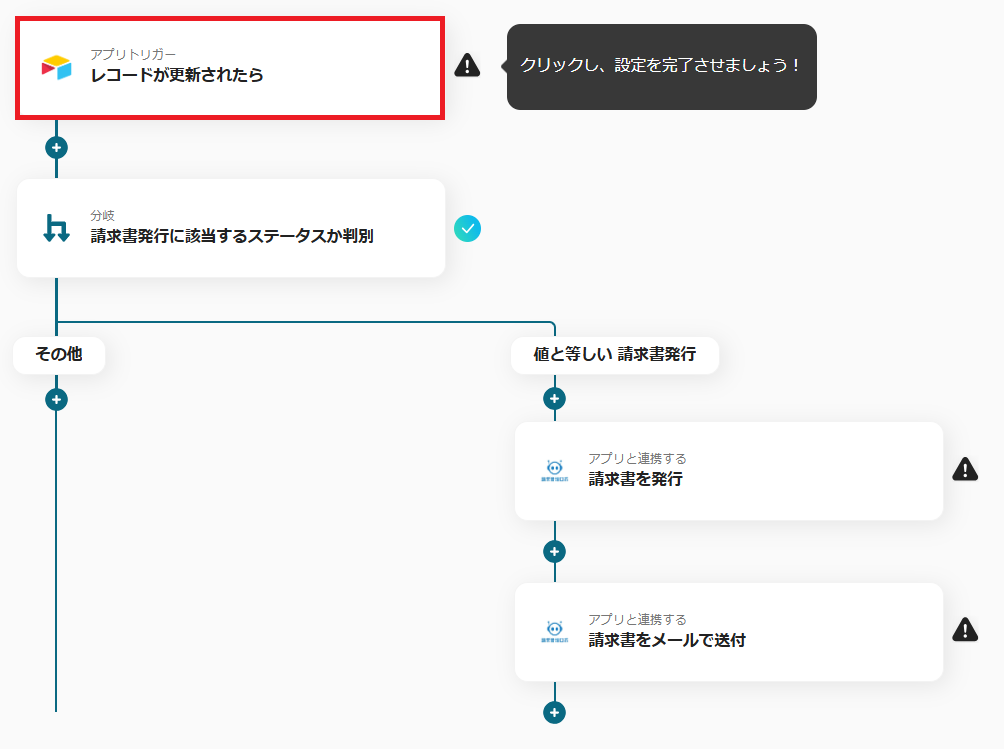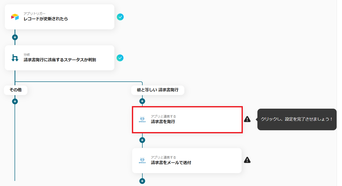 この設定により、Airtableのデータベースで特定の項目が特定の値になった場合のみ、請求書を作成できます。