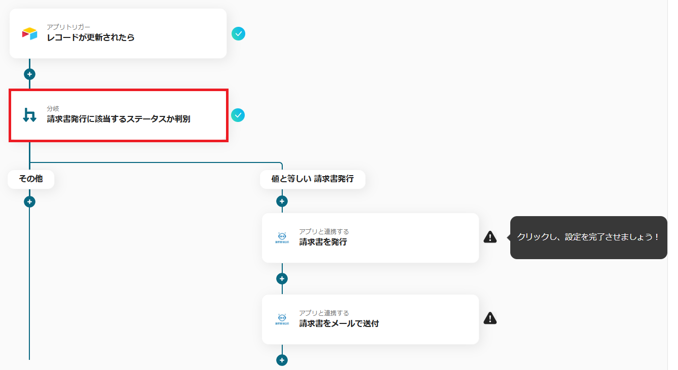 6.「分岐 請求書発行に該当するステータスか判別」をクリックします。