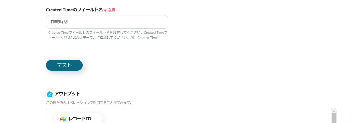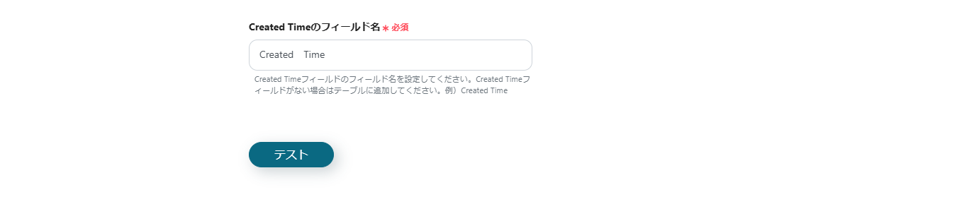 Airtableに設定したCreated Timeのフィールド名を入力してください。