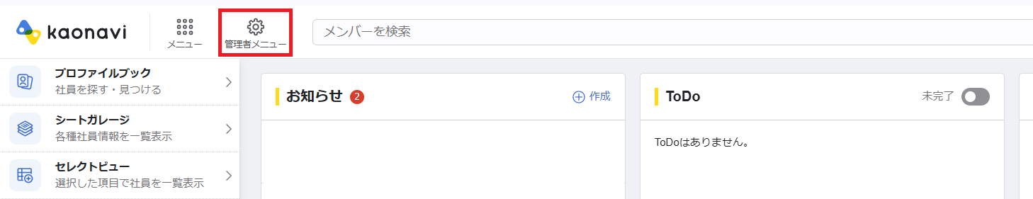 カオナビのアイコンの「メンバーを登録」をクリックします。