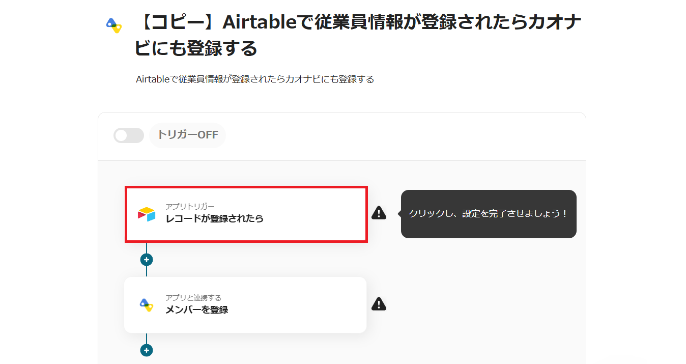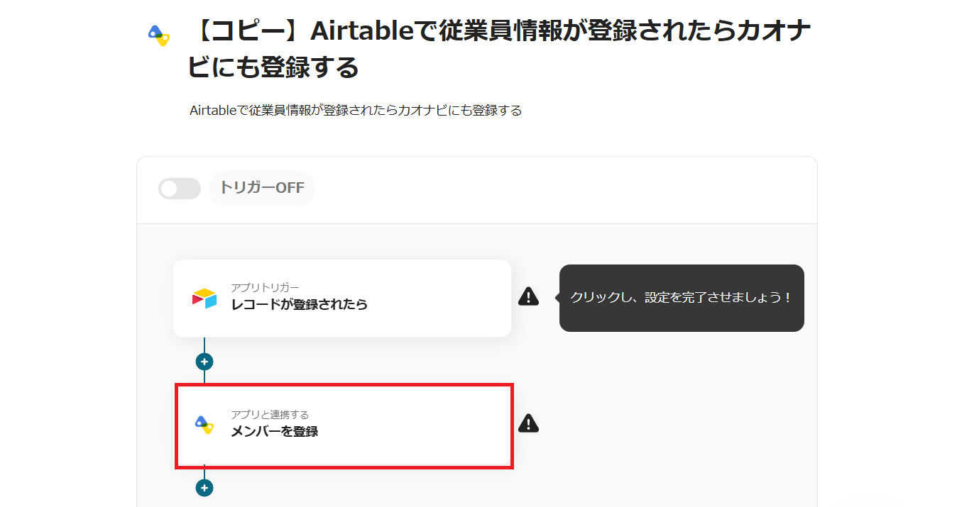 ・トリガーボタンをONにして、Airtableとカオナビの連携動作を確認