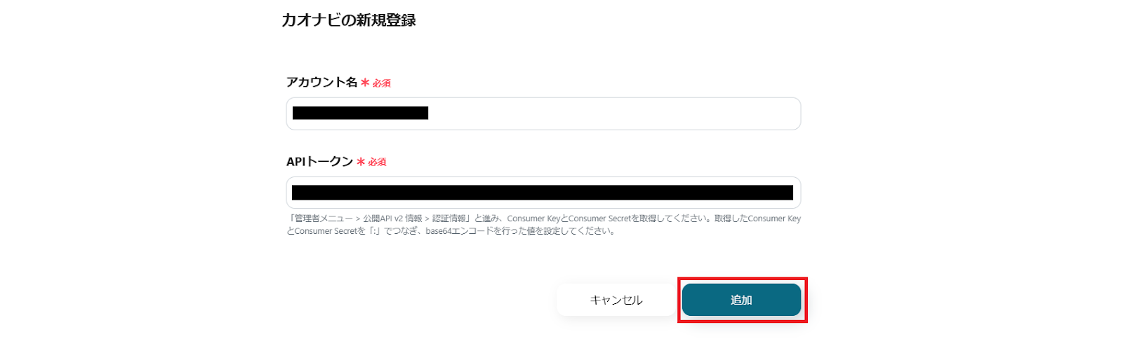 赤枠の内容の通りにAPIトークンを取得し、入力していきましょう。