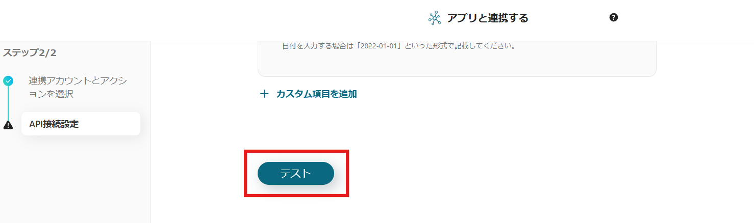 設定が完了したらテストボタンを押してください。
