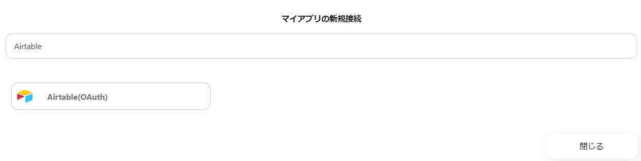 Airtableの準備ができたら、検索ボックスにAirtableと入力し、Airtableのアイコンをクリックします。