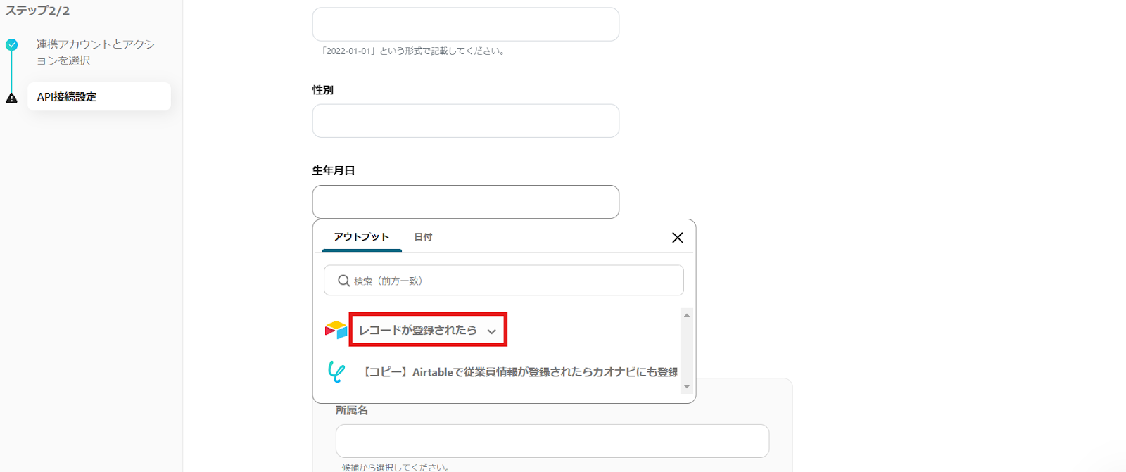 Airtableで従業員情報が登録されたらカオナビにも登録する