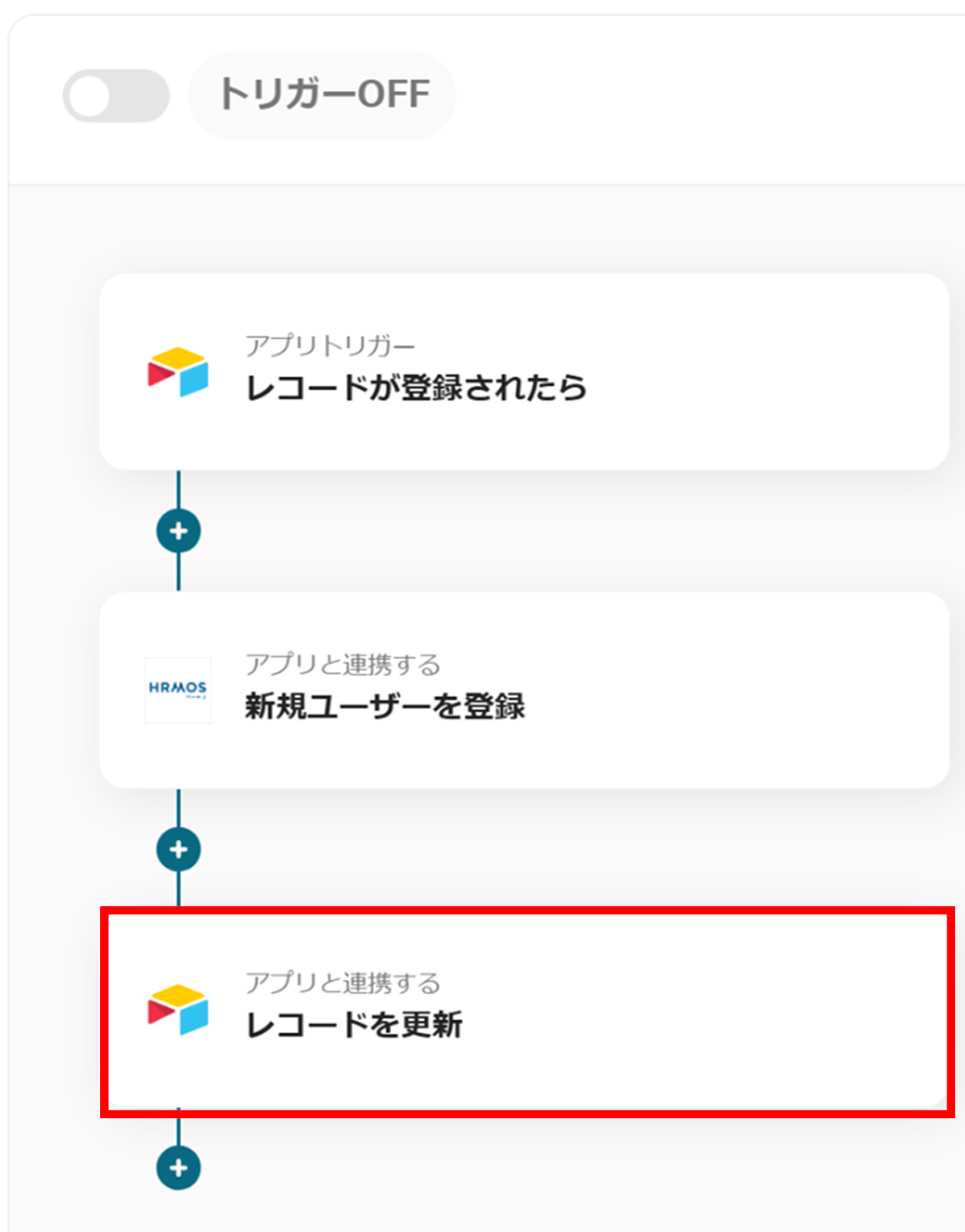 これで、「Airtableで従業員情報が登録されたらHRMOS勤怠に追加する」フローボットの完成です。