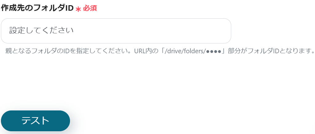 スクロールし、説明を確認して「作成先のフォルダID」を設定しましょう。
