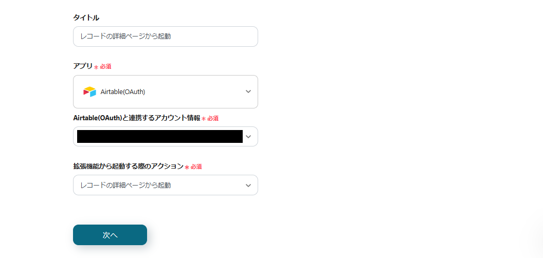 まずは、「レコードの詳細ページから起動」を設定していきます。