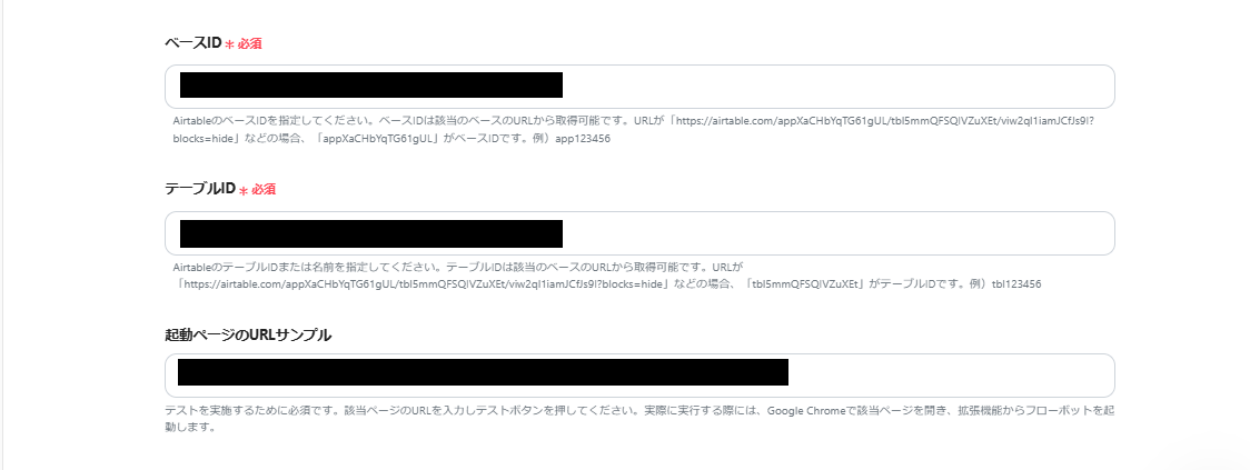 ベースIDとテーブルIDは、ボックス下部の注釈を参考に入力します。