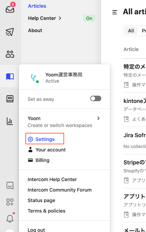 参照)詳しい設定方法はこちらをご覧ください:Intercomのマイアプリ登録方法