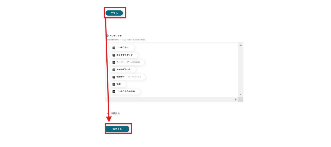 アウトプットに先ほど追加した項目が表示されたら「保存する」をクリックします。